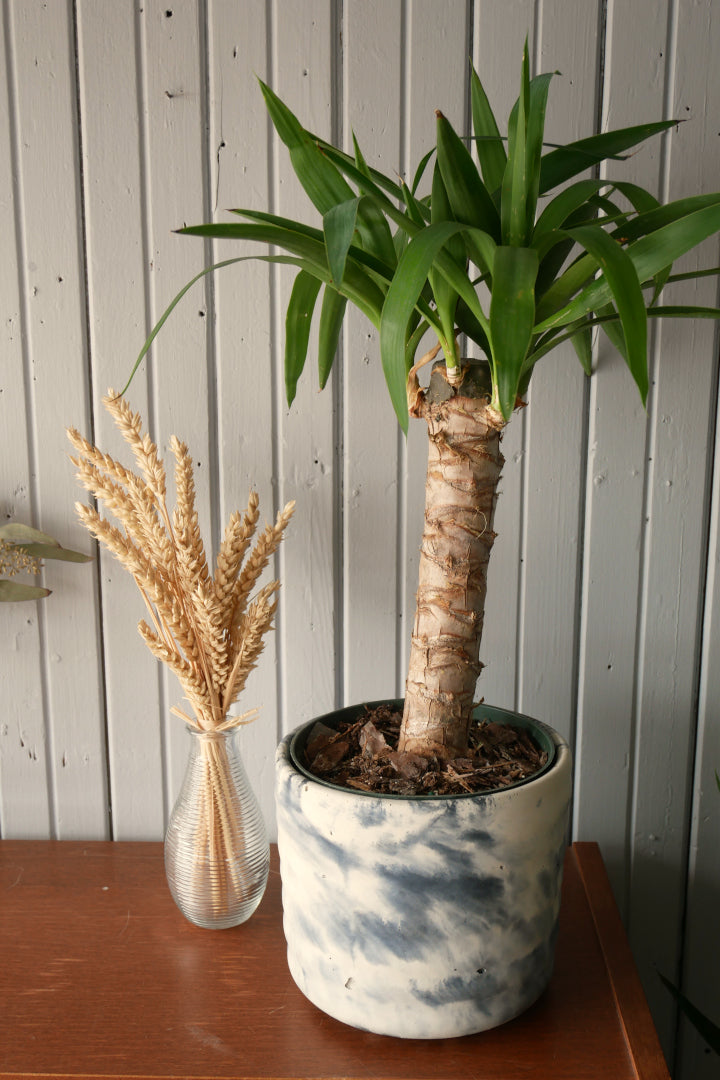 Yucca is a popular houseplant. Appreciated for its decorative and evergreen foliage, it is one of the easiest houseplants to maintain. Installed in a veranda, it will bring a touch of exoticism. Yucca gets its name from the Latin "Yucca elephantipes" because of the bark of the trunk which resembles an elephant's foot.